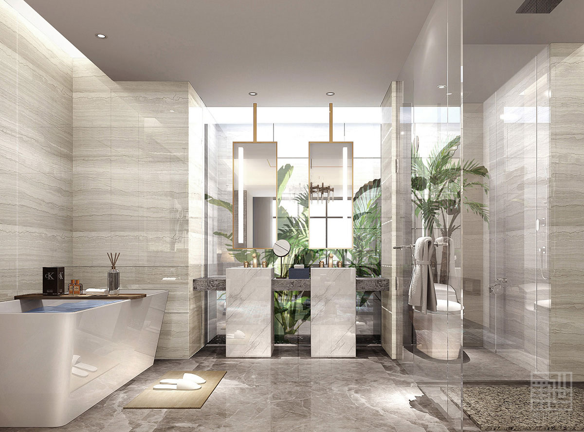 設(shè)計(jì)師通過(guò)對(duì)當(dāng)代設(shè)計(jì)的創(chuàng)造,利用簡(jiǎn)約又不失多元化的設(shè)計(jì)手法對(duì)客房空間進(jìn)行探索,從宮殿式建筑立面概念到景觀環(huán)境的連接,全程參與協(xié)調(diào)其中,以客房空間作為延伸點(diǎn),極力打造綠色科技、人文度假的酒店。衛(wèi)生間采用大理石臺(tái)面、水槽和象牙白墻面,整體色調(diào)和諧統(tǒng)一,但又在設(shè)計(jì)細(xì)節(jié)上讓人感受到極致的品質(zhì)。平整的線(xiàn)條與晶透的大理石糅合在一起,給室內(nèi)帶來(lái)了安靜的高級(jí)感,現(xiàn)代風(fēng)格的室內(nèi)設(shè)計(jì)及熱帶植物為酒店帶來(lái)了濃郁的度假風(fēng)情。戶(hù)外汀步區(qū)域被熱帶植物環(huán)繞,藤編的休閑椅和木質(zhì)家具,還有磨平的石頭地面,都讓人感到全身心的放松。房間明亮舒適,溫暖而富有度假氣息,巨幕落地窗旁邊設(shè)有躺椅,讓賓客無(wú)論坐臥都能將度假酒店戶(hù)外的美景盡收眼底??头康靥汉推渌b飾品與相應(yīng)的度假主題呼應(yīng),細(xì)膩柔和的材質(zhì)與色彩,注重細(xì)節(jié)與使用的便利,而非強(qiáng)調(diào)設(shè)計(jì)的搶眼及特殊,讓人既不會(huì)感受到空間的壓迫,完全地放松與融合,用時(shí)又與文化相玩味。仰望場(chǎng)景的思考,是軟裝情景代入感的表現(xiàn),更是室內(nèi)美學(xué)思考的高級(jí)營(yíng)銷(xiāo)手段,這也是藝術(shù)運(yùn)用酒店空間的非凡意義。賓客在其間穿行、停留,擁有豐富而不同的感官體驗(yàn),卻歸于統(tǒng)一而寧?kù)o的心靈感受,最終放松而滿(mǎn)足于此次的身心之旅。