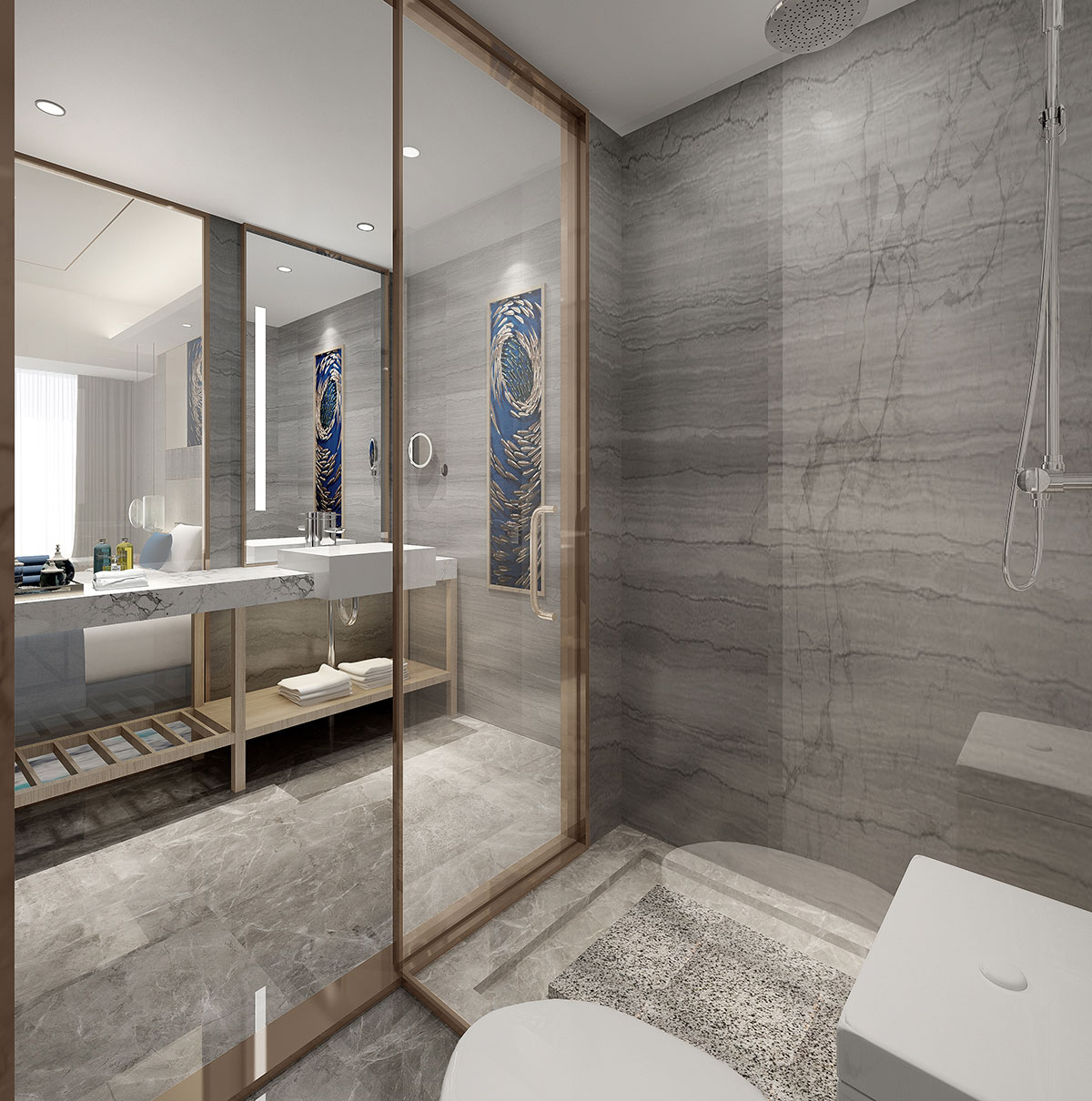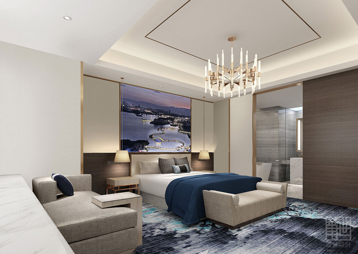 客房區(qū),考慮到更多的是入住消費(fèi)者的度假體驗(yàn),在風(fēng)格上和公區(qū)做了一定的區(qū)分,延續(xù)了宮殿建筑的元素,而通過(guò)空間布局強(qiáng)化了功能性、舒適性及隱私性,并同步考慮了高效的智能化系統(tǒng)。實(shí)現(xiàn)的不僅僅是功能上的要求,更重要的是滿(mǎn)足消費(fèi)者的精神追求,優(yōu)雅知性的品味讓這個(gè)設(shè)計(jì)更飽滿(mǎn),更富有度假的氛圍烘托感,從而實(shí)現(xiàn)心靈的治愈。