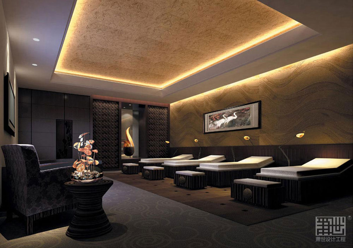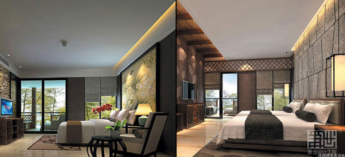 沐園總面積約3760平方米,由入口大廳,休閑廳及各種客房組合。背山面水,且在山頂設(shè)有露天溫泉池。建筑依勢(shì)逐層退臺(tái),與周邊環(huán)境融合共生。室內(nèi)設(shè)計(jì)充分利用建筑結(jié)構(gòu)優(yōu)勢(shì),以“水”、“瓷”為設(shè)計(jì)主題,著力營(yíng)造輕松舒適的休閑氛圍,并引入新興的“野奢”酒店設(shè)計(jì)理念,強(qiáng)調(diào)原生態(tài)奢享自然概念。入口大堂通過(guò)合理空間改造,使原本逼仄的空間顯得開闊的同時(shí)更加與戶外景觀互動(dòng),整面青瓷罐裝飾墻氣勢(shì)不凡,加上入口水景雕及燈飾點(diǎn)綴,整個(gè)空間大氣而不失親和,給人以深刻的第一印象??头吭O(shè)計(jì)充分發(fā)揮建筑優(yōu)點(diǎn),針對(duì)不同空間性格由內(nèi)向外逐步布置相關(guān)功能,使內(nèi)外空間有機(jī)過(guò)渡,同時(shí)使功能利用率提高,最大程度營(yíng)造書舒適的休閑環(huán)境,裝飾手法以木、竹、石等本地材料為主,既經(jīng)濟(jì)有展示出本土文化的神韻。山頂露天泡池區(qū)在滿足使用功能的前提下,結(jié)合景觀園林一體化考慮,使客人身在其間最大程度地實(shí)現(xiàn)與自然的融合。
